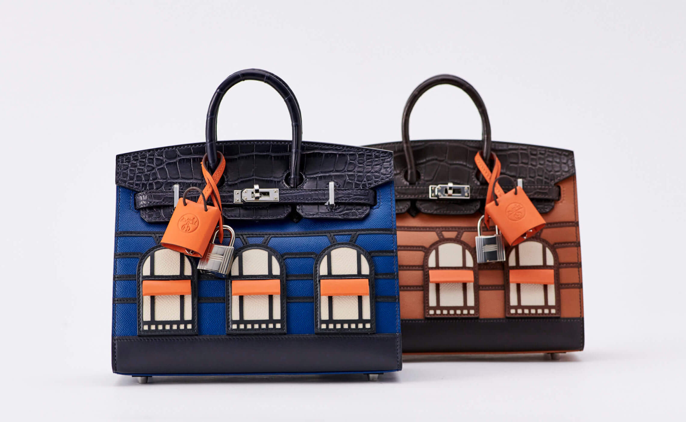 Take the limited edition Faubourg: intricate detailing depicting the façade of Hermès flagship store is made up of four premium leathers – Matte Alligator, Madame Calfskin Leather, Swift Leather, and Sombrero Leather, as well as Palladium hardware, all hand-constructed with breathtaking detail. Only fifty Faubourg-designed bags in each color scheme and unique 20 cm size exist.
