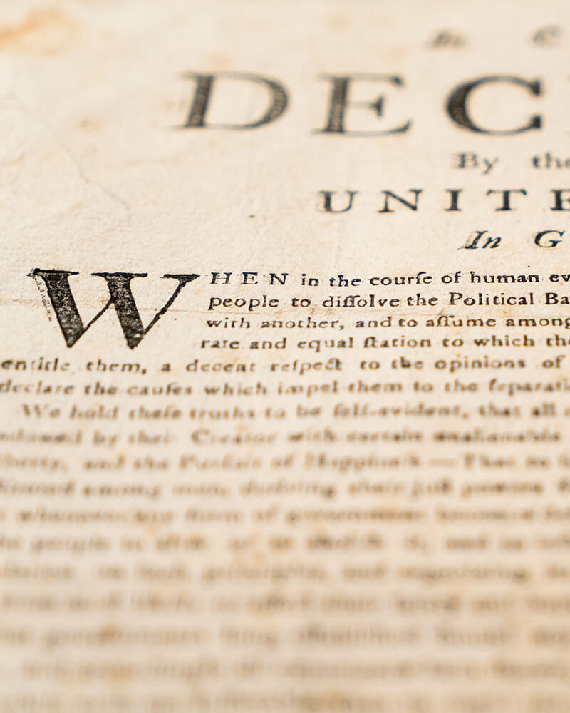 Though today we honor the adoption of the Declaration of Independence on July 4th with fireworks and hot dogs, in 1776 it took several weeks for most colonists to hear the news that would form the basis of American democracy. To alert the masses of independence, large single-sheet copies called “broadsides” were sent out from Philadelphia. Rally’s #1776 is a broadside copy of the Declaration of Independence printed in Exeter, NH after word finally reached the town on July 16. Formerly displayed at the National Constitution Center, #1776 is 1 of an estimated 20 privately-owned examples from July 1776.