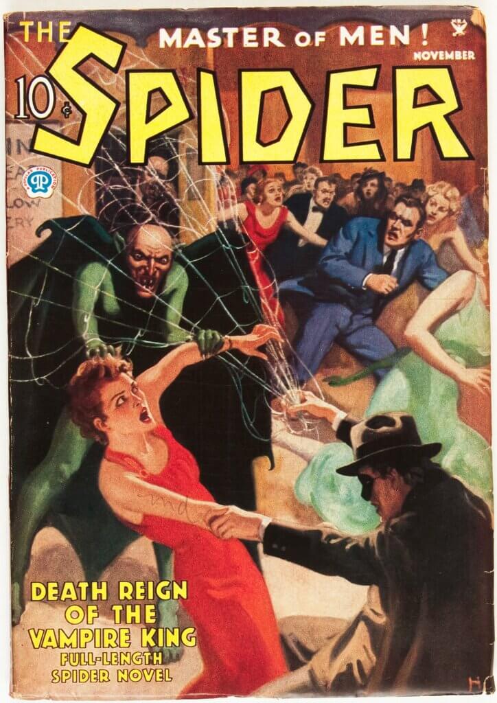 The name “Batman” doesn’t come from high-brow philosophy or a fancy playwright, but he too started out as a villain. In the popular pulp series The Spider, “the Bat Man” debuted in the November 1935 issue “Death Reign of the Vampire King.” This character commanded a massive colony of vampire bats that terrorized cities, killing thousands with fast-acting poison bites. He glided on large, crafted wings and wore a grotesque bat mask described as “…incredibly hideous, the nose sliced off….” Even more familiar was the detail that the Bat Man had “attached huge, pointed ears to his head.”