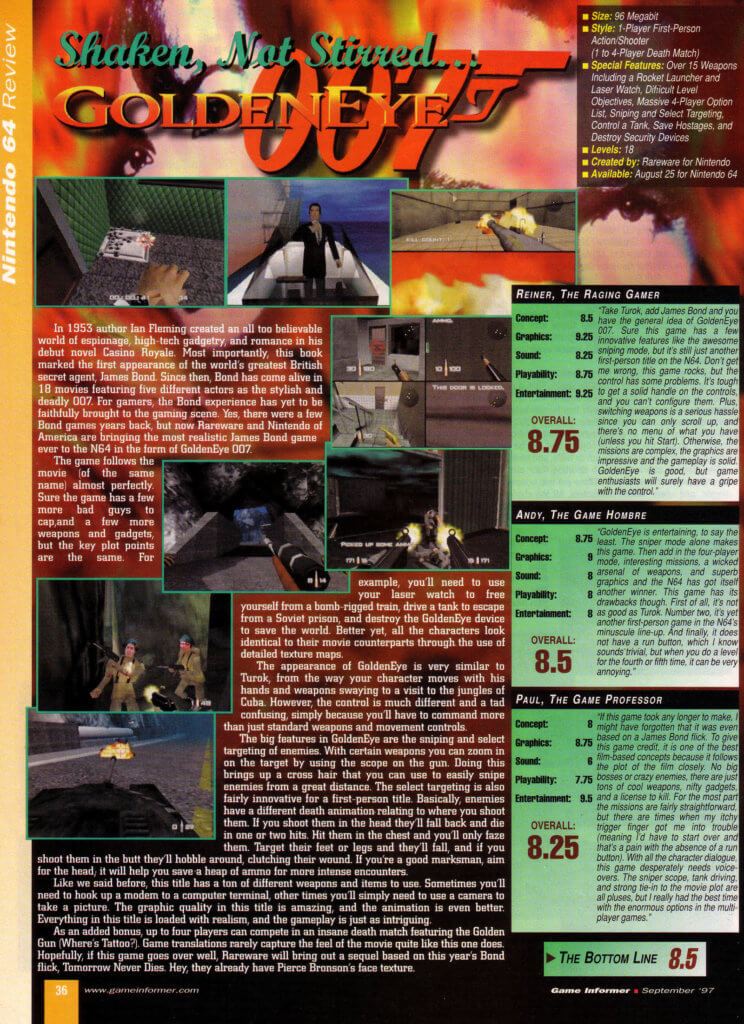 “In fact, we can say with a clear conscience that Goldeneye 007 is the best single-player first-person game on any system.” Perry, IGN