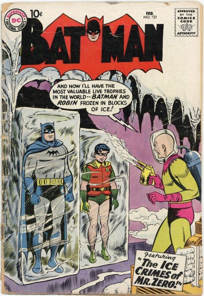 Mr. Freeze’s name came from the ‘60s TV show as well. Before the showrunners tweaked the villain’s name, he was called Mr. Zero in his comic debut [Batman #121 (February 1959)]. This wouldn’t be the last time a TV show would upgrade Mr. Freeze either. In the widely respected Batman: The Animated Series, Mr. Freeze would be given a new origin that was so impactful that it was officially adopted across the comics and beyond.