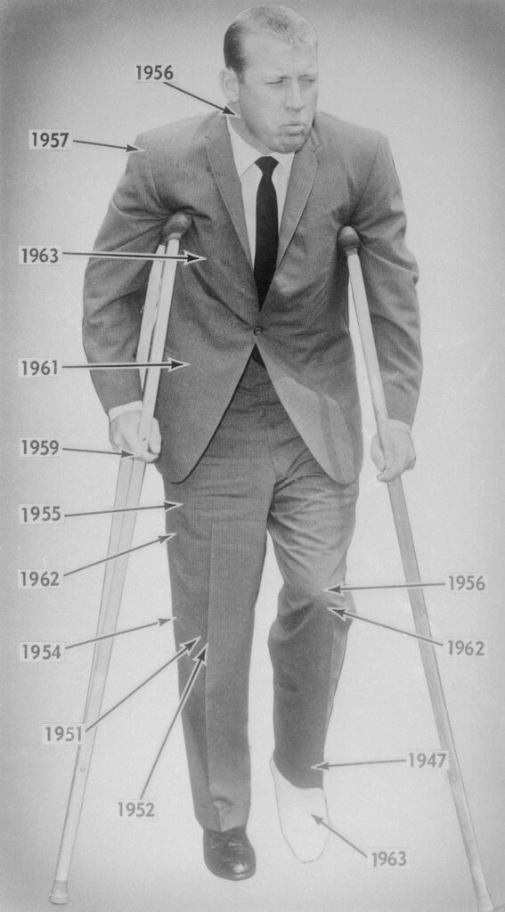 The slew of injuries to follow not only deprived Mantle of his blazing speed — which once clocked him at 3.1 seconds from home plate to first, a mark which, if true, would make him the fastest player in history — but also helped to foment his alcoholism, which began after Mutt’s death and would continue for the rest of his life.