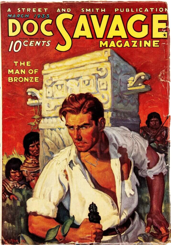 Superman’s most famous nickname, “The Man of Steel,” was also directly inspired by popular pulp hero Doc Savage. Action Comics #6 (November 1938) debuted the title when newspaper The Daily Star ran the headline “Mystery Man of Steel Re-appears…” Doc Savage was known as “The Man of Bronze” since his Doc Savage Magazine debut in March 1933 a good five years before Superman. But this wouldn’t be the only thing Superman (or Batman) swiped from the character (more on that later).