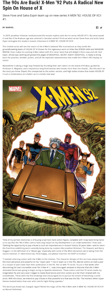 “I was so pissed off. I couldn’t believe what they did to Cyclops. He was supposed to be a hero and they had him walking out on his wife and newborn child and not even thinking twice about it. No one was connecting the dots.”