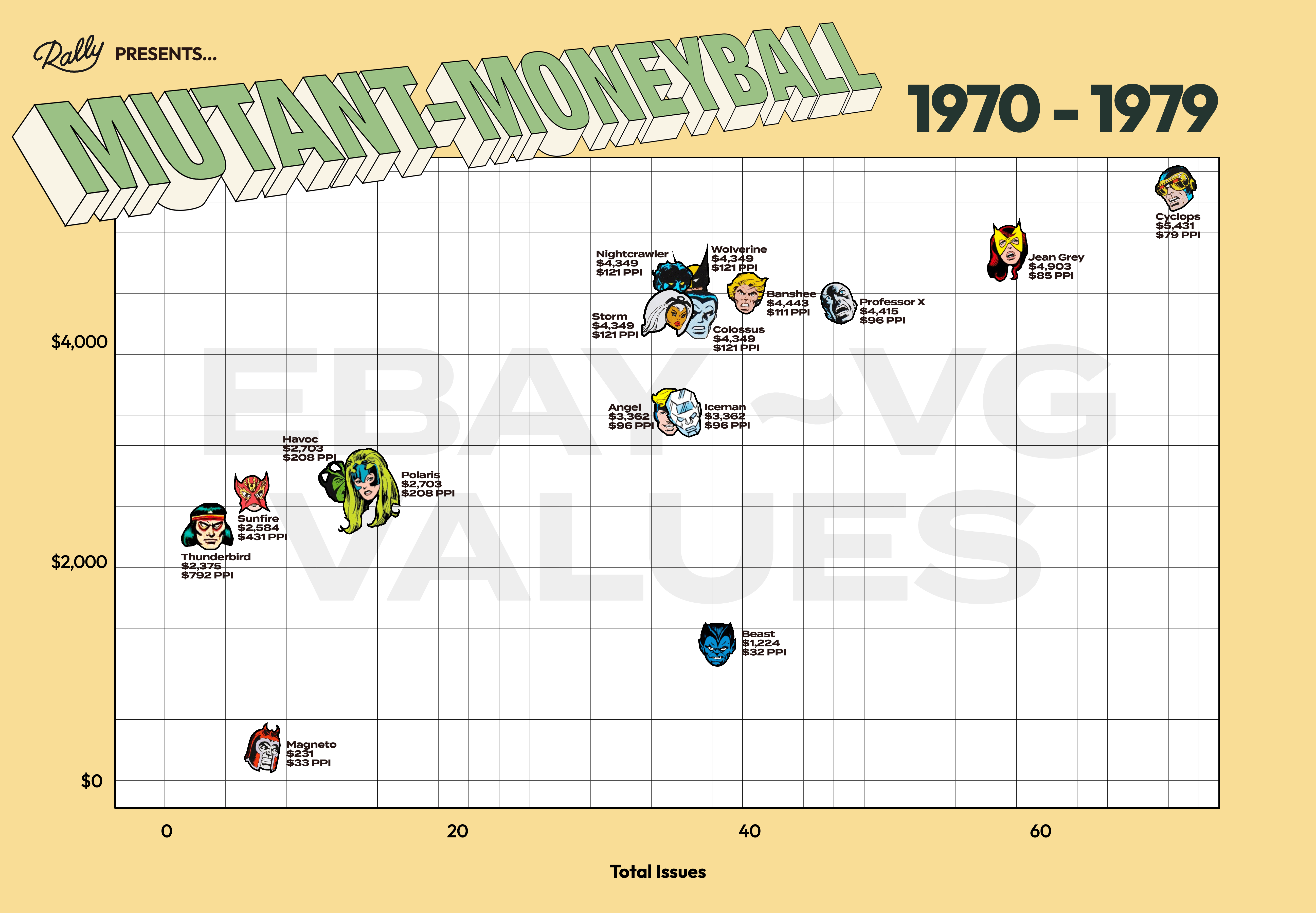 Most Valuable Mutant: Eric Magnus (Magneto) with an average $1,227 dollars per issue (Declared VG condition) / $44,841 per issue (Graded 9.6-9.9)