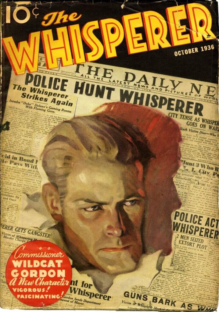 The only Batman character who hails back to the Dark Knight’s first appearance in 1939 is Commissioner Gordon. He would eventually get the full name James W. Gordon, which once again is borrowed from pulps. A magazine called The Whisperer debuted one James “Wildcat” Gordon in October 1936. He started as a police inspector who took the law into his own hands as The Whisperer, but by the end of that first story he was promoted to – you guessed it – commissioner. The Whisperer’s initial run lasted 14 issues, ending in December 1937.
